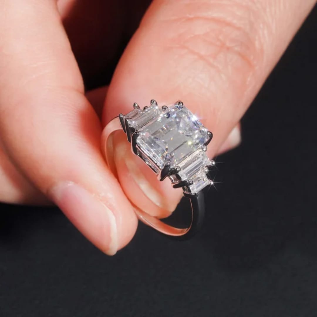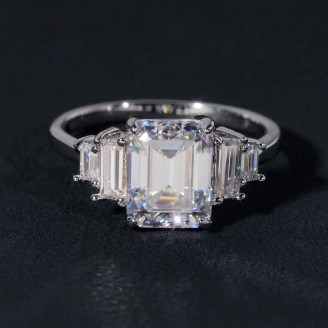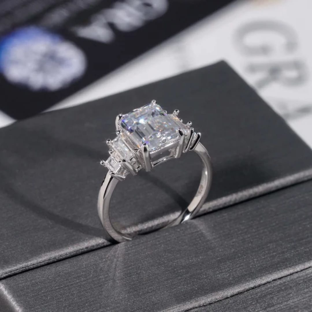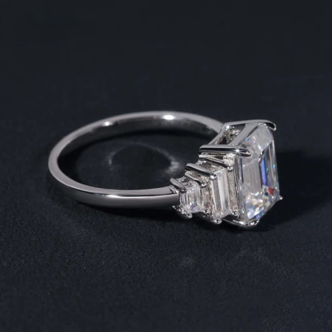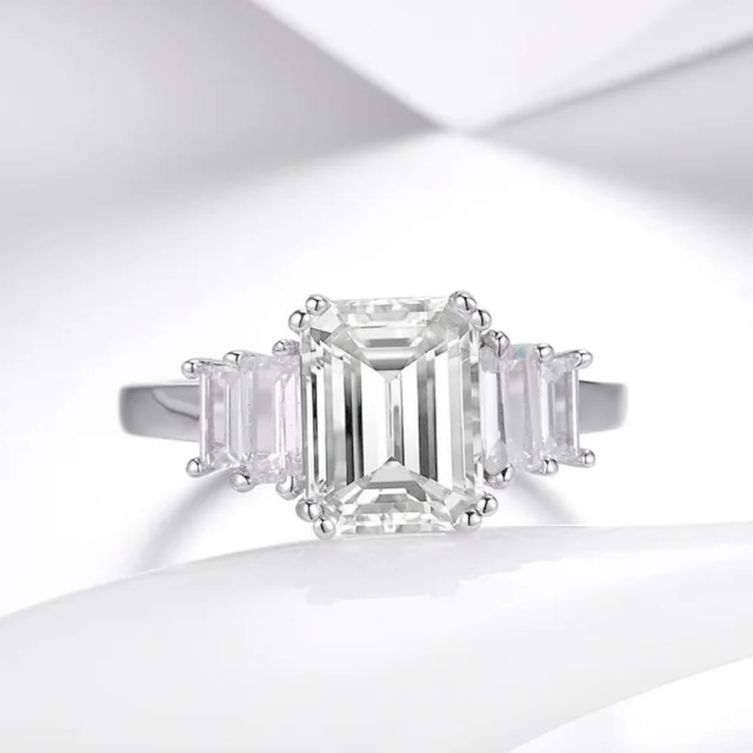 The Aurora ring, crafted from 925 sterling silver, features a radiant emerald-cut moissanite that embodies the beauty of new beginnings. Inspired by the first light of dawn, it symbolizes hope, renewal, and endless possibilities—a timeless piece to celebrate life’s luminous moments.