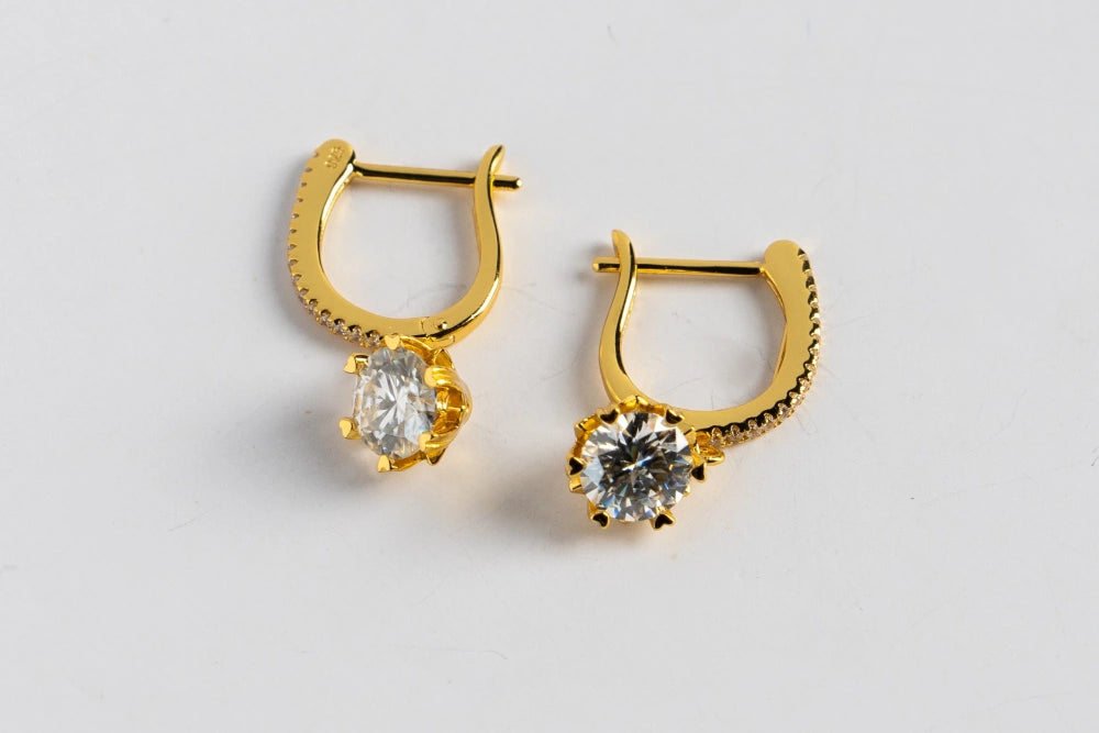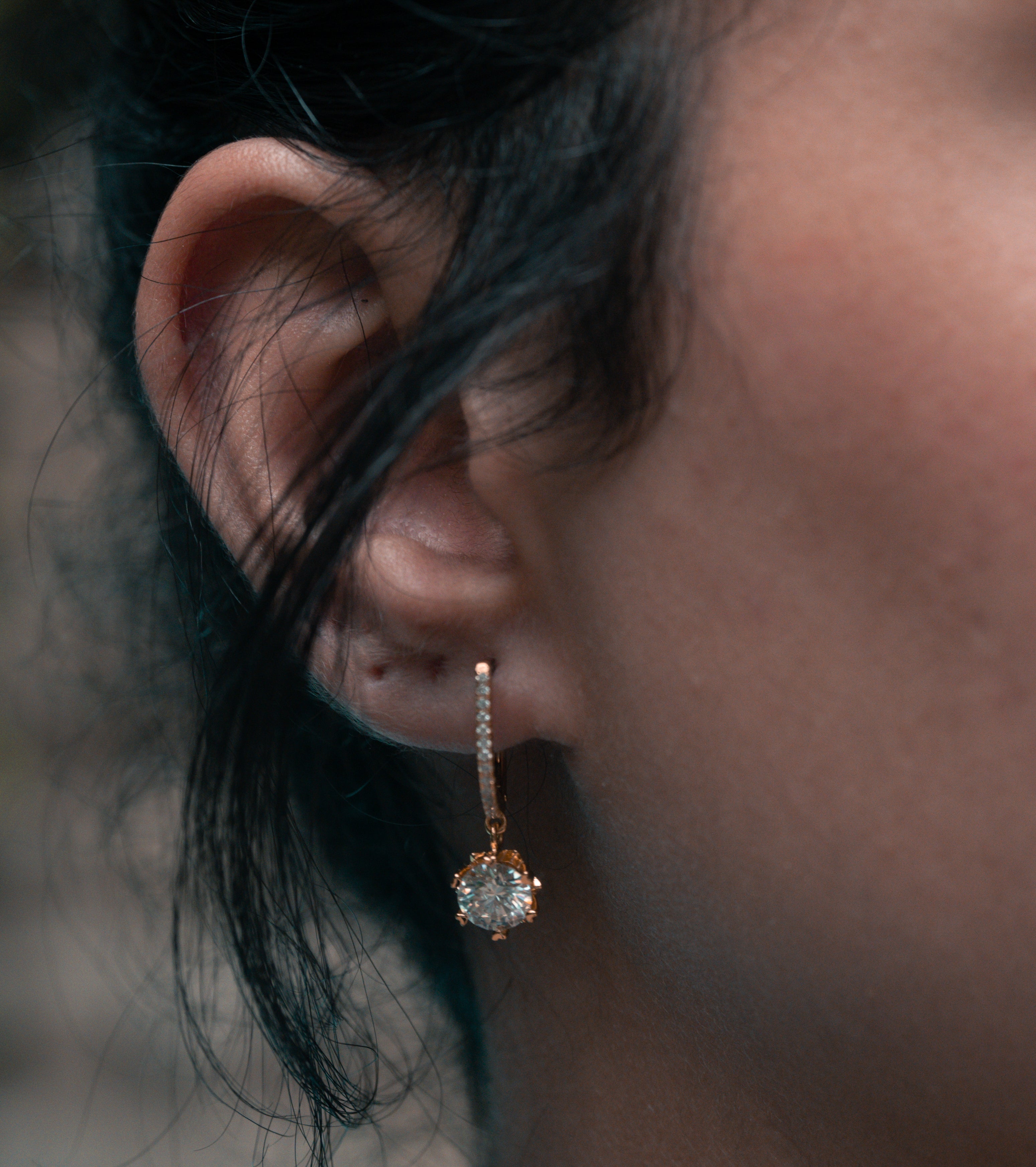 Inspired by the celestial brilliance of stars, the Enchanted Light earrings embody the radiant beauty of the night sky. Each earring features a dazzling round-cut moissanite gemstone, meticulously set within a sunburst design, symbolizing the enchanting allure of light. The golden hue of the setting accentuates the sparkle, creating a harmonious blend of warmth and brilliance.These earrings are perfect for those special moments when you want to shine the brightest. Whether it's a formal gala, a wedding, or a sophisticated evening out, the Enchanted Light earrings will illuminate your presence, adding a touch of celestial elegance to your ensemble. Embrace the magic of these earrings and let them become a cherished part of your collection, celebrating the light within you.