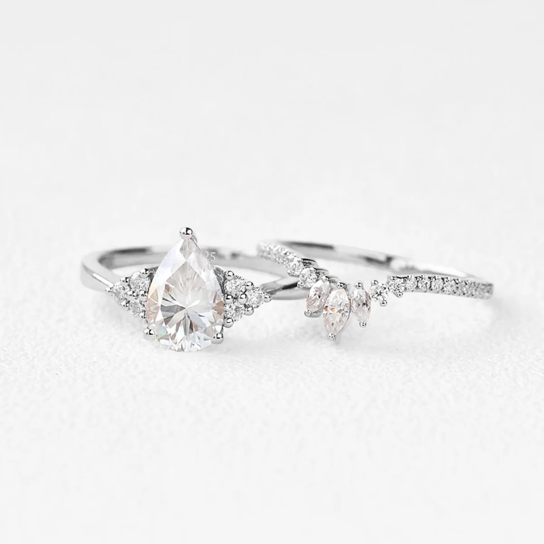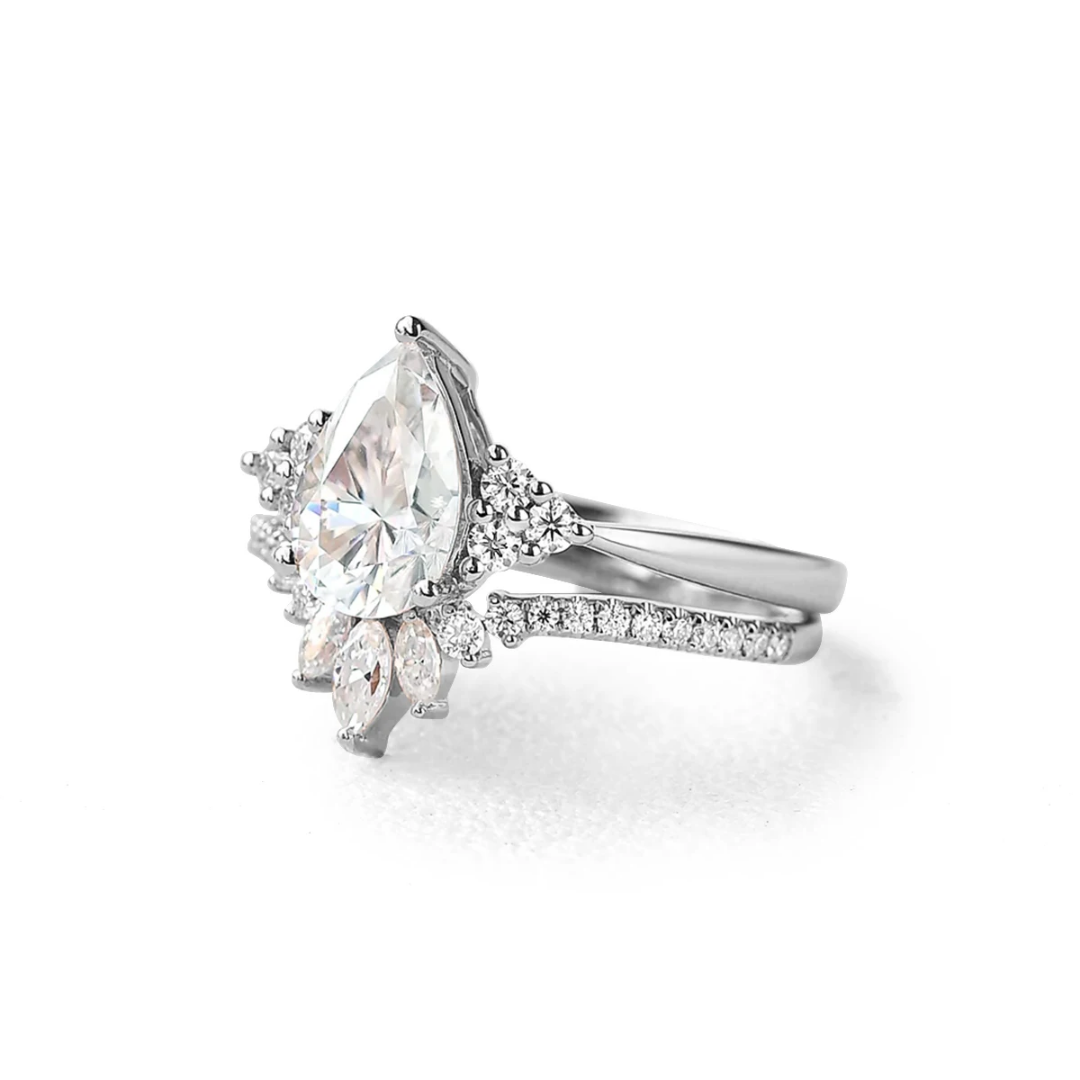 The Entranced by You ring, featuring a stunning pear-cut moissanite center, embodies the elegance and strength of women. Each detail mirrors the confidence and grace found in the heart of every woman. Available in silver, gold, and rose gold, this ring is perfect for celebrating life's precious moments, symbolizing triumph, resilience, and timeless beauty. Embrace its allure and let your light shine brilliantly, captivating those around you with its enchanting sparkle. Whether for an engagement, anniversary, or just to treat yourself, this ring promises to make every occasion unforgettable.