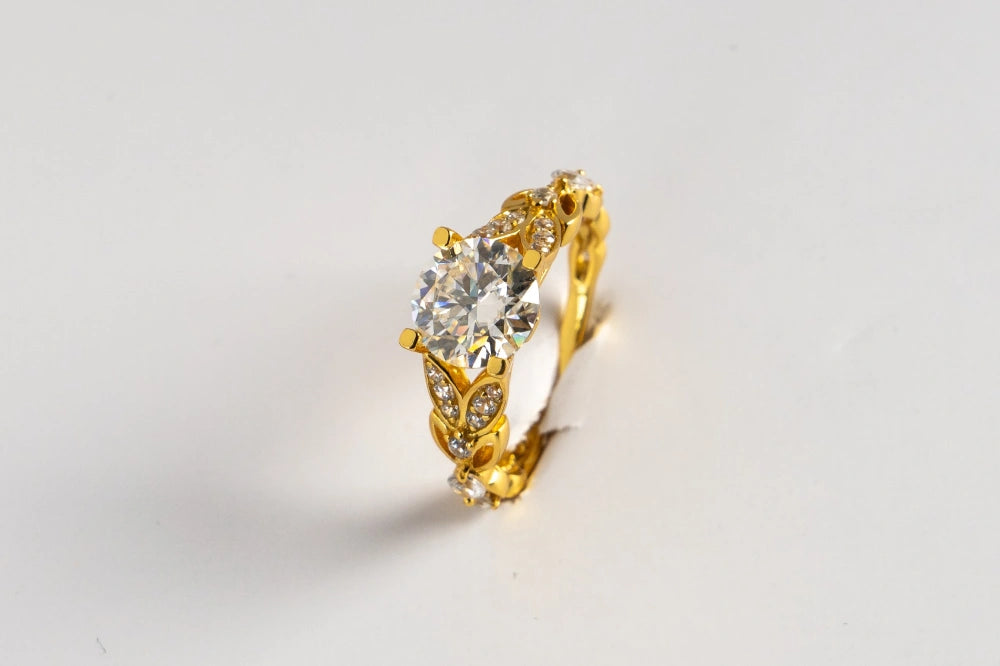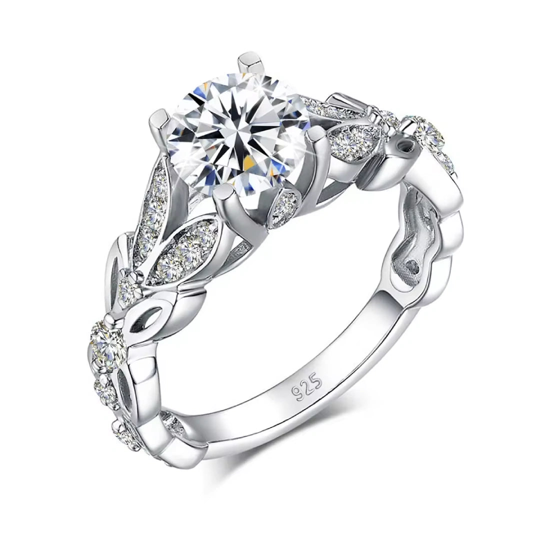 Inspired by the timeless elegance of nature, the Eternal Promise Ring is a masterpiece of artistry and craftsmanship. Made from 925 sterling silver and available in a radiant gold finish, a classic silver finish, and a romantic rose gold finish, this ring features a dazzling central moissanite stone surrounded by intricate floral motifs. Each petal and leaf, encrusted with sparkling accents, represents the delicate beauty and resilience of nature. The Eternal Promise Ring is more than just jewelry; it’s a celebration of life’s precious moments and the everlasting bonds that blossom from them. Perfect for engagements, anniversaries, or any occasion that deserves to be remembered, this ring is a symbol of enduring love and elegance.