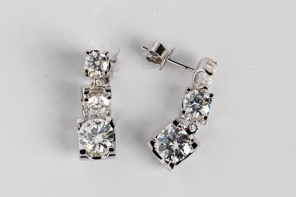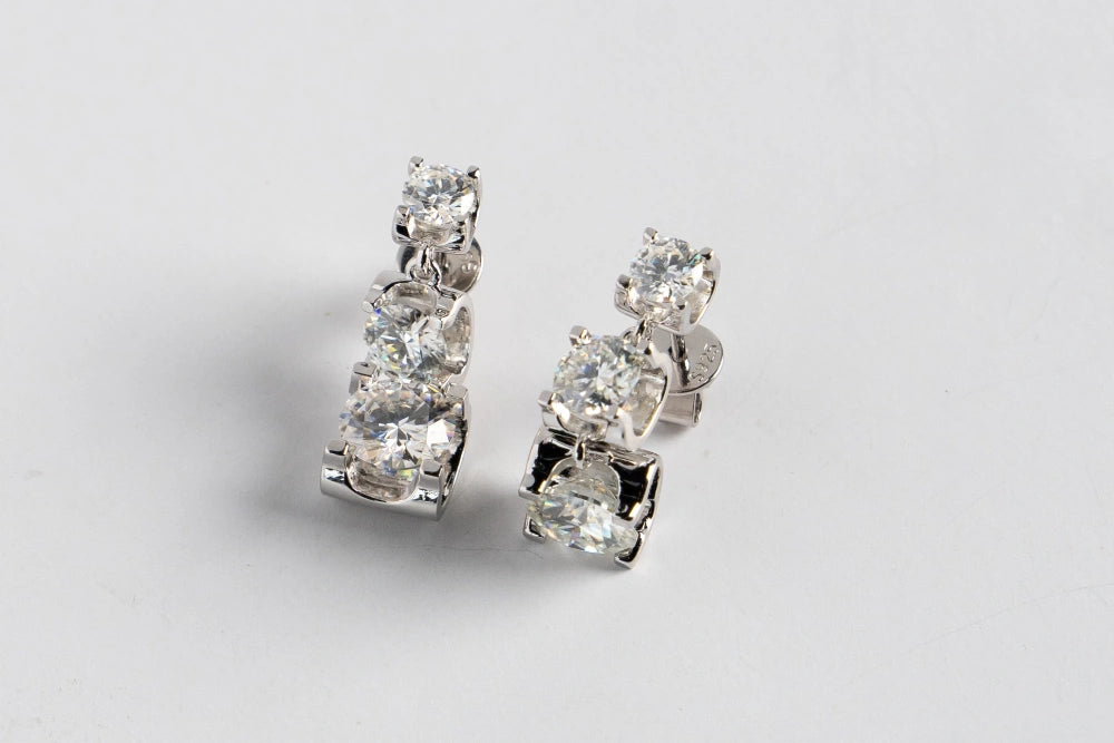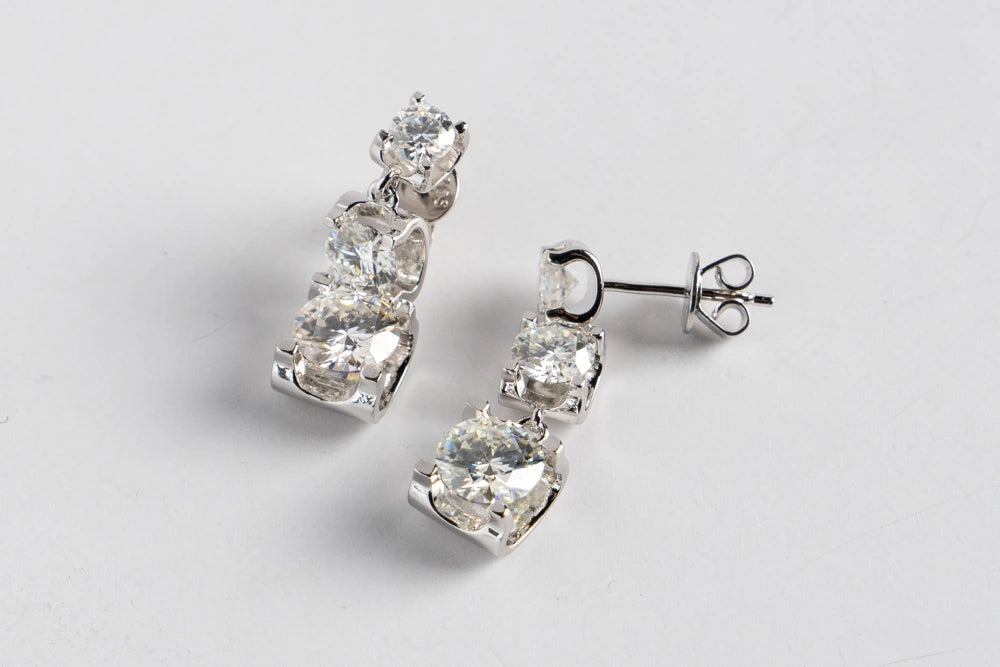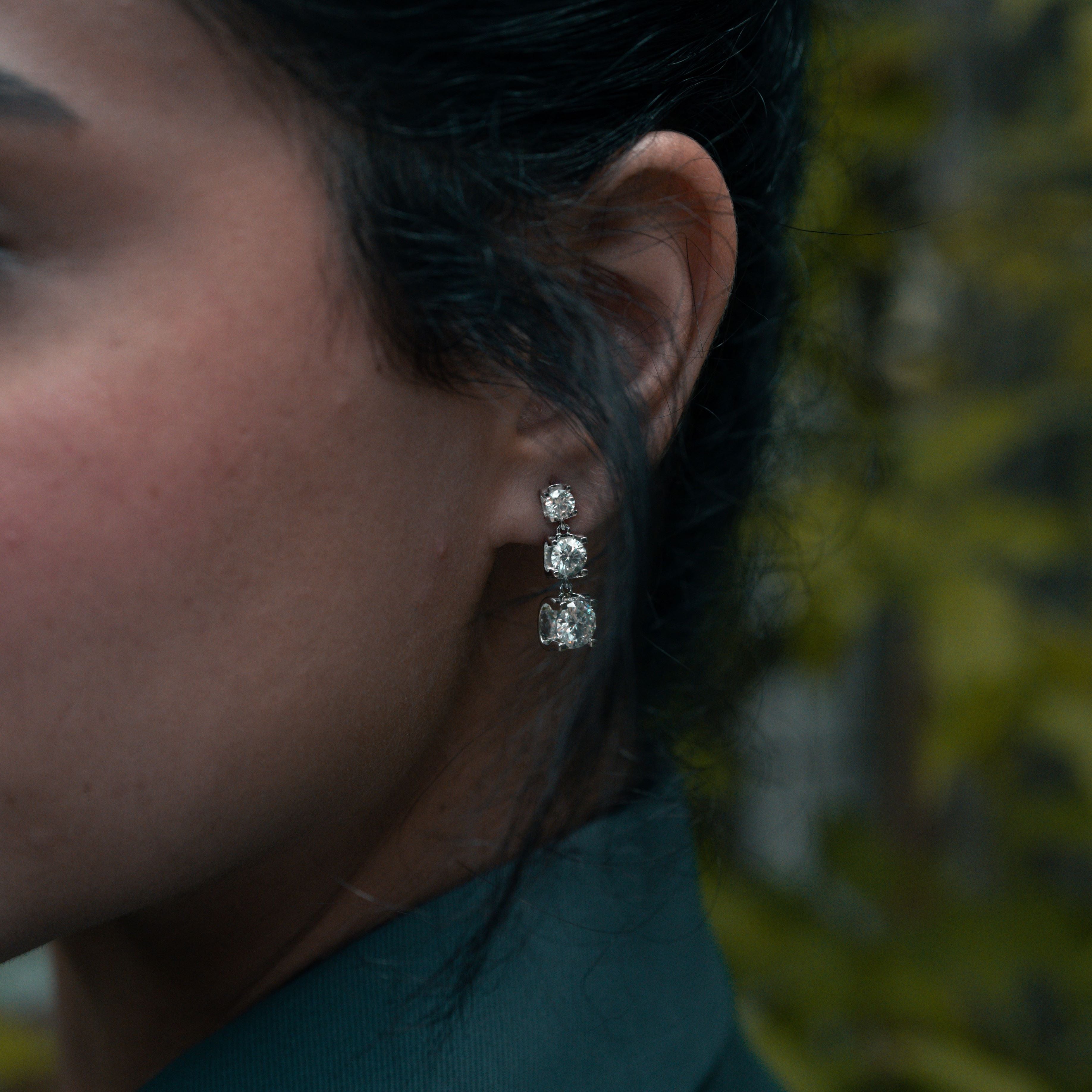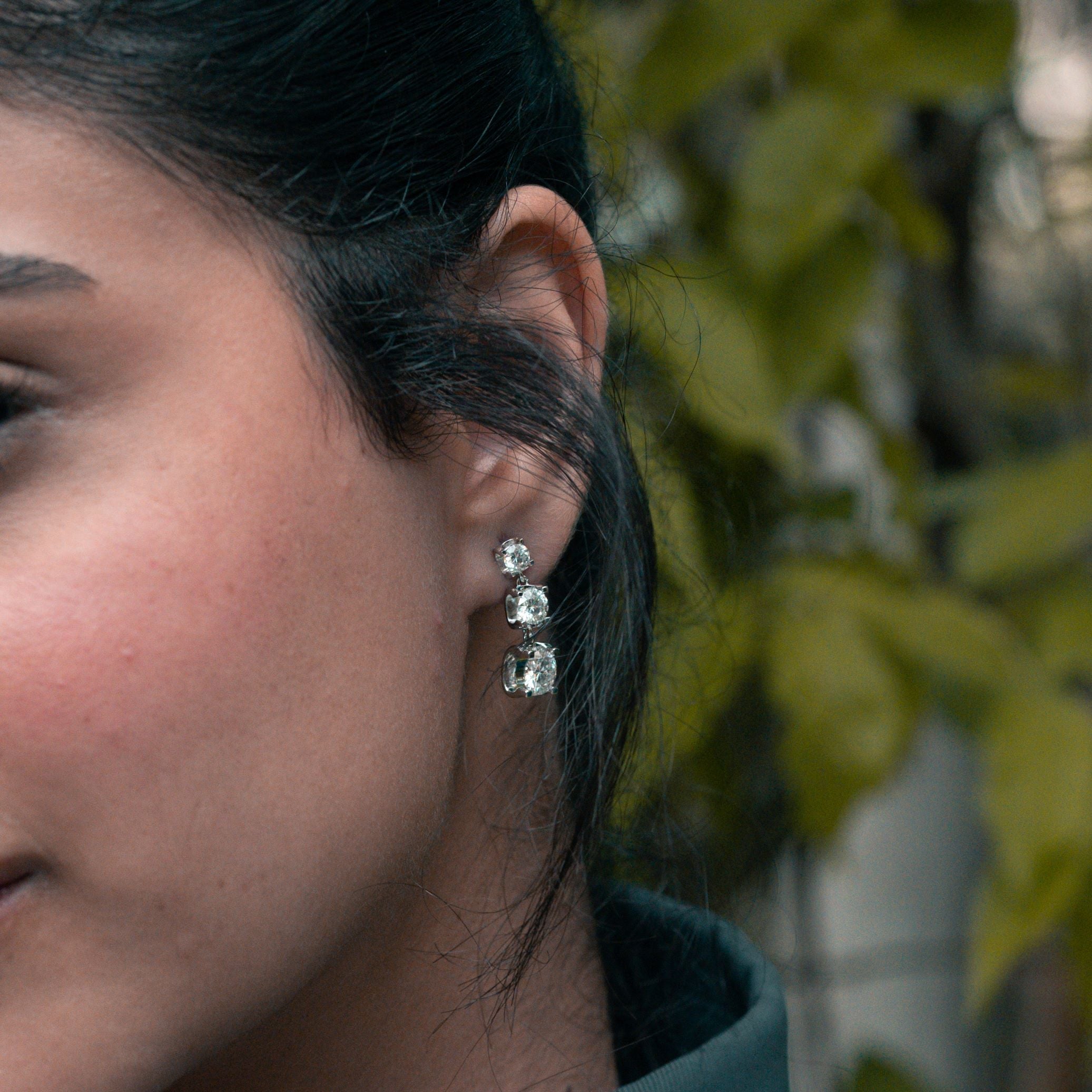 Introducing Everlasting Embrace, a pair of stunning earrings that symbolize eternal love and connection. Each earring features three beautifully cut stones that cascade elegantly down, capturing the light and sparkling with every movement. Their timeless design makes them perfect for special occasions, adding a touch of elegance and sophistication to your ensemble. Whether you're attending a grand event or simply want to feel extraordinary on a regular day, these earrings will make you shine. Embrace the beauty and elegance of Everlasting Embrace, and let them become a cherished part of your jewelry collection.