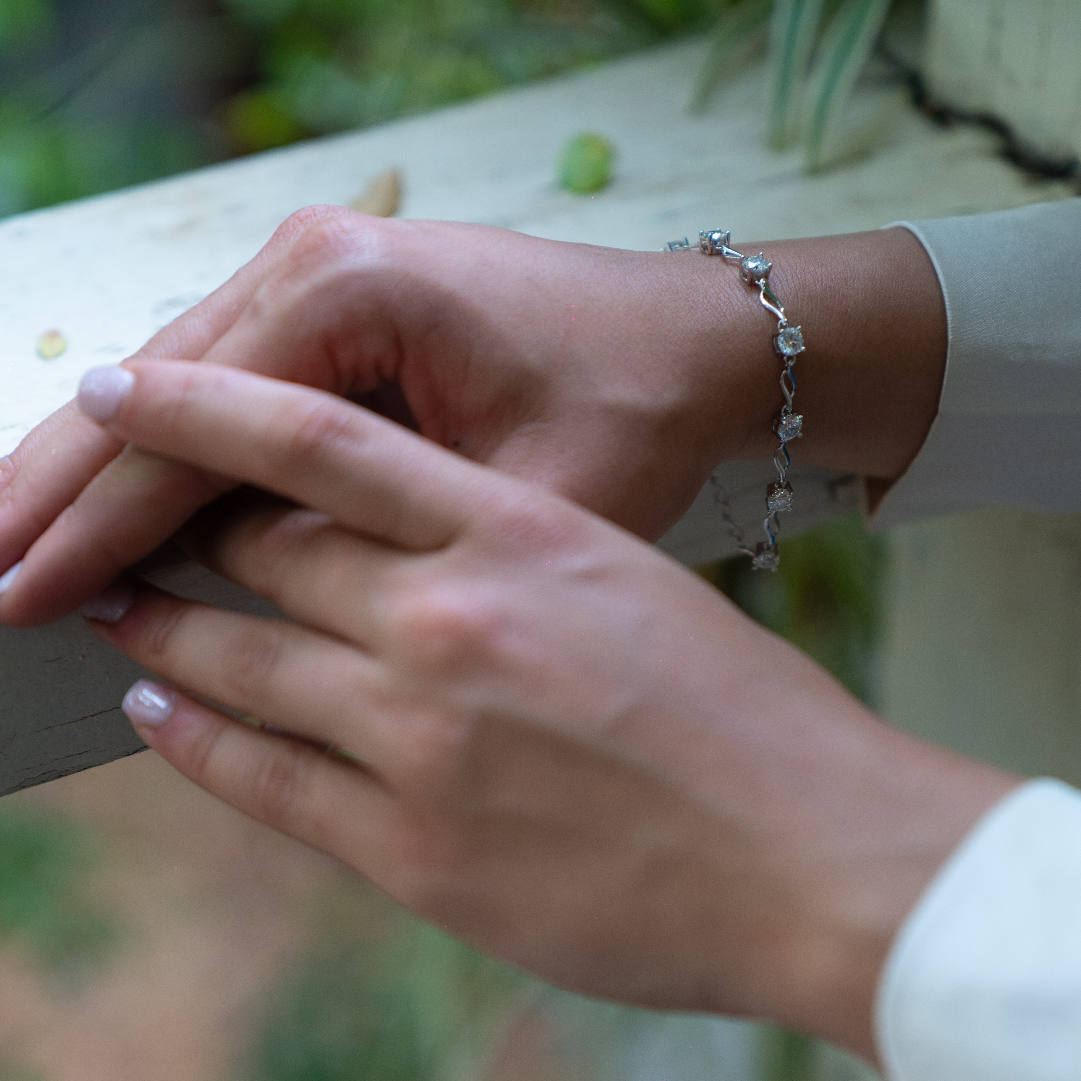 Embodying the timeless beauty of commitment, the "Forever Yours" bracelet is an exquisite piece inspired by the elegance of everlasting love. Each link of the bracelet interweaves, symbolizing the unbreakable bond between soulmates. The radiant stones set in delicate, swirling motifs capture the essence of eternal devotion, reflecting a love that is as infinite as the stars. This bracelet is not just a piece of jewelry; it’s a promise of enduring affection and a celebration of a love story that lasts forever.