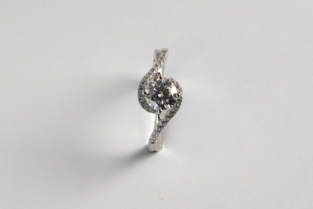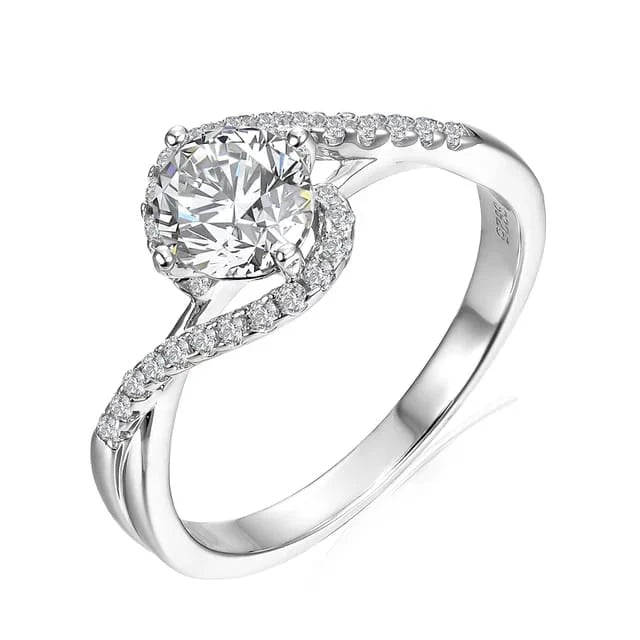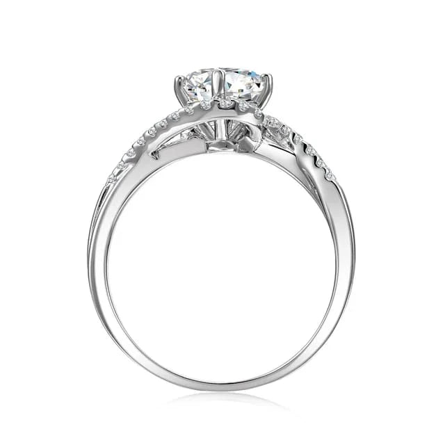 Love's Embrace captures the essence of affection and connection. The intertwining bands symbolize the intertwining paths of two souls coming together. The brilliant round centerpiece signifies the heart of the relationship, sparkling with every facet of shared moments and memories.Perfect for engagements or anniversaries, this ring is a testament to eternal love and commitment. Its elegant design ensures it stands out, making it an ideal choice for significant occasions or everyday wear to remind one of the everlasting bond shared with a loved one.