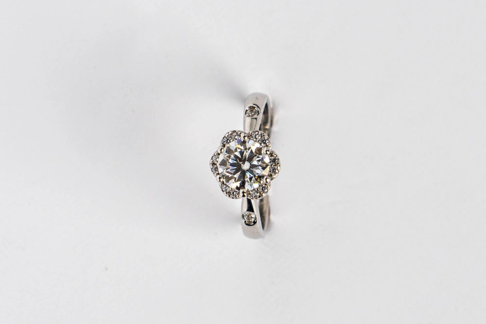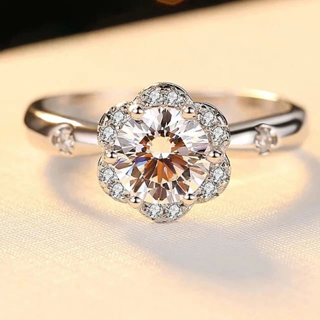 This exquisite ring, with its intricate floral design and brilliant central stone, symbolizes inner beauty and strength. Each petal reflects a chapter of your unique journey, making "Soul's Reflection" a testament to growth and self-discovery.The delicate hearts on the band add a touch of romance and sophistication, representing the love and passion in your life. Perfect for celebrating milestones, self-love, or meaningful connections, this ring is a reminder of the beauty within.Crafted with meticulous detail, it combines timeless elegance with contemporary flair, ensuring it remains a cherished piece in your collection. Let "Soul's Reflection" be the mirror to your soul, reflecting your grace, resilience, and luminous spirit in every facet.