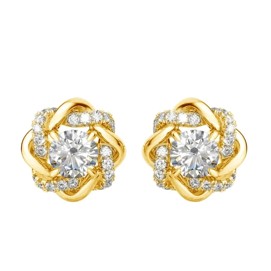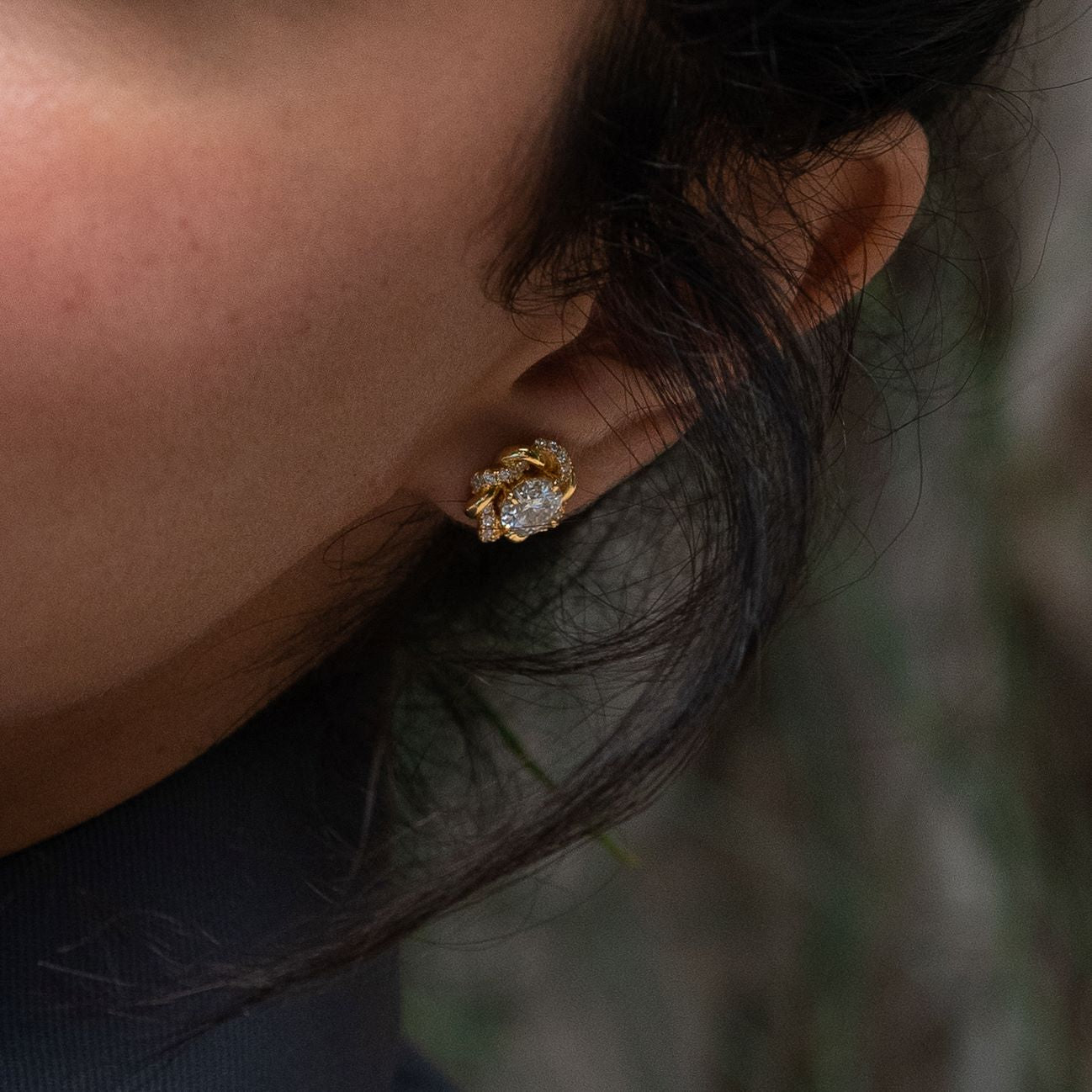 The Soul's Song earrings capture timeless elegance and heartfelt emotion. The intricate knot design symbolizes the intertwining of two souls, reflecting unity and harmony in deep connections. Encrusted with sparkling stones, these earrings embody the brilliance of a shared journey, representing enduring love and commitment.Versatile and elegant, the Soul's Song earrings are perfect for both everyday wear and special occasions. Whether for a romantic evening, a significant celebration, or adding sophistication to your daily ensemble, these earrings shine brightly, symbolizing the precious moments and connections in your life. Available in silver, gold-plated, and rose gold-plated finishes, they suit any style and occasion.