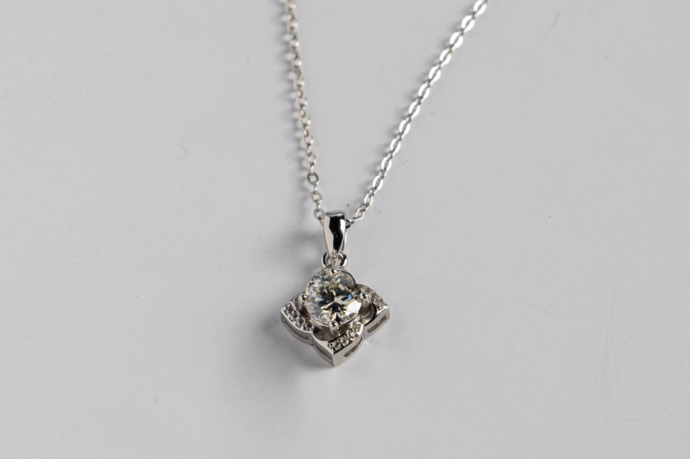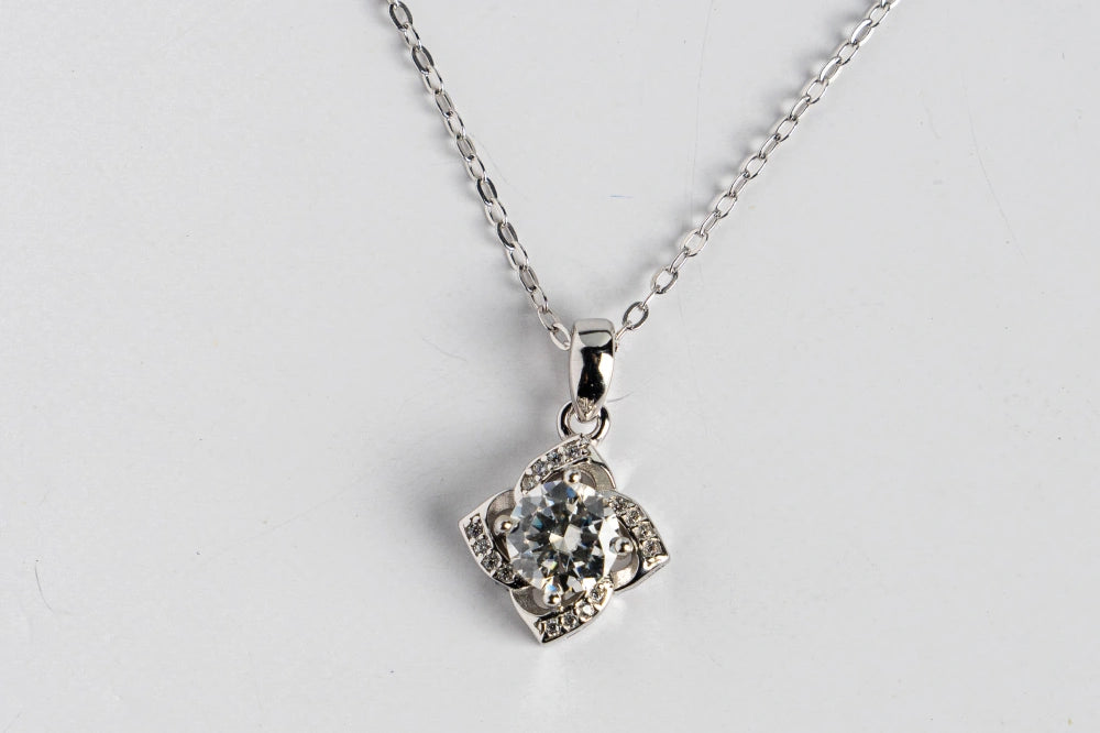 Inspired by the delicate and mesmerizing patterns found in nature, the Whispers of Enchantment necklace captures the essence of understated elegance. This piece features a beautifully cut moissanite gemstone, encircled by intricate loops that symbolize the intertwining paths of life and love.Ideal for both everyday wear and special occasions, this necklace effortlessly transitions from a day at the office to an evening out, adding a touch of sophistication to any outfit. Whether you're looking to elevate your daily look or seeking the perfect accessory for a memorable event, the Whispers of Enchantment necklace is designed to make every moment enchanting.