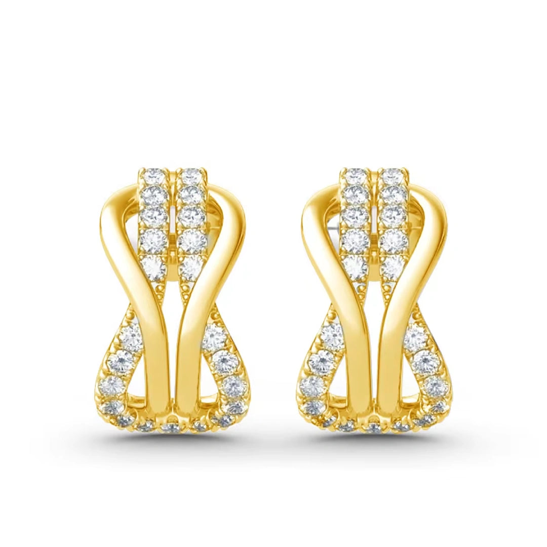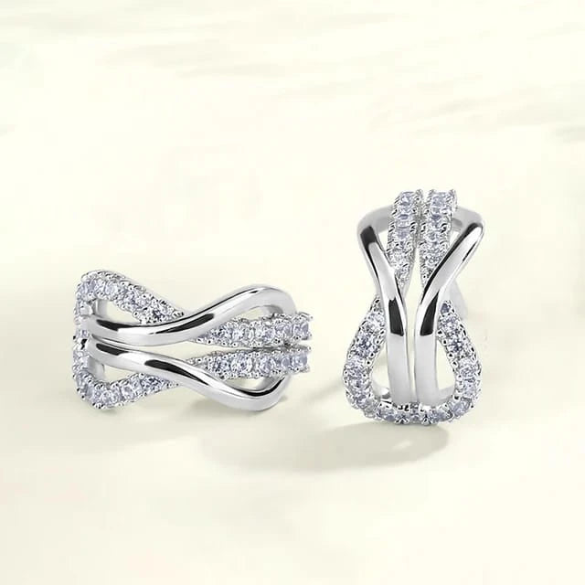 Introducing Whispers of Forever Earrings: a timeless symbol of elegance and sophistication. These earrings feature interwoven bands of shimmering moissanite stones, creating a captivating and intricate design. Inspired by the enduring bonds of love and commitment, each piece reflects the eternal nature of true connection.Available in silver, gold-plated, and rose gold-plated options, these versatile earrings are perfect for both everyday wear and special occasions. Whether you're attending a gala, celebrating an anniversary, or simply adding a touch of elegance to your daily ensemble, Whispers of Forever will ensure you shine with grace and sophistication. Embrace the beauty of these exquisite earrings and let them be a cherished part of your jewelry collection.